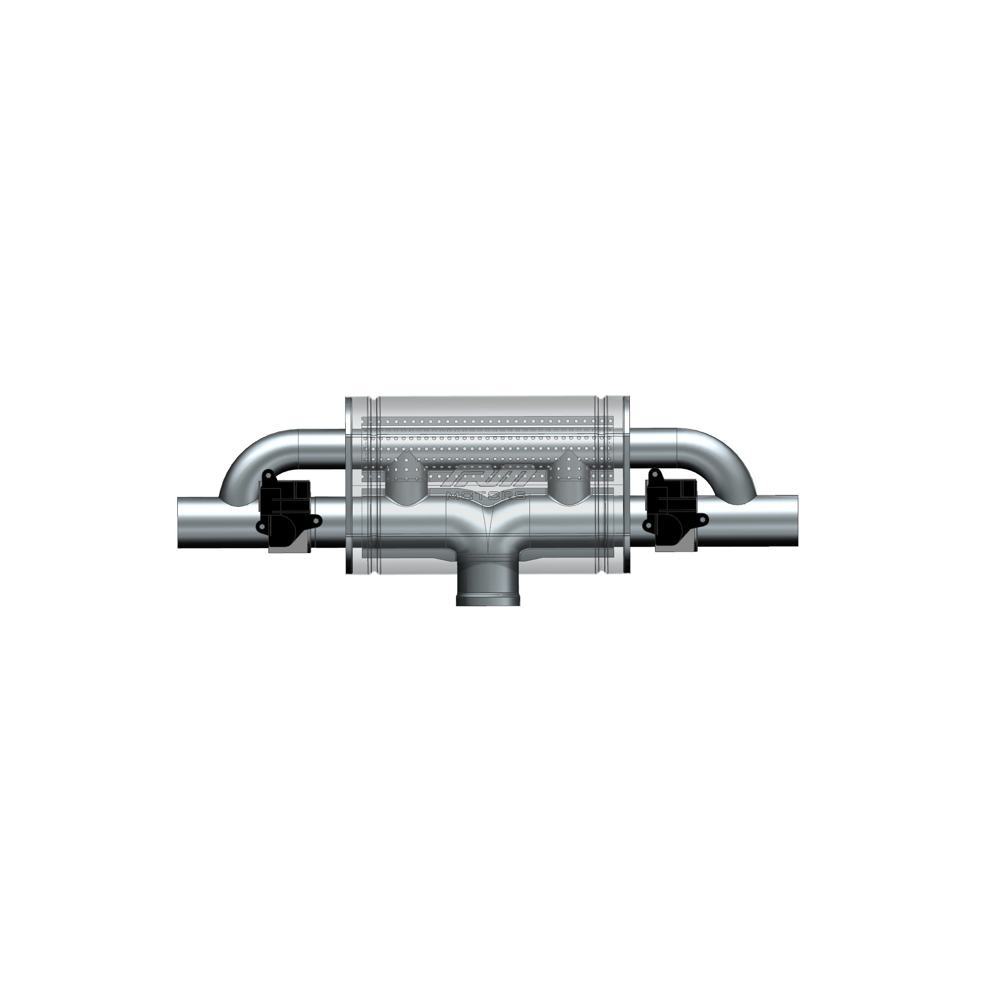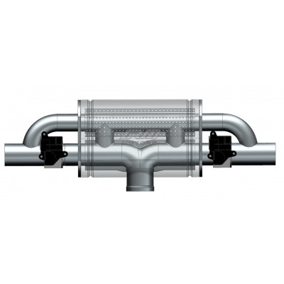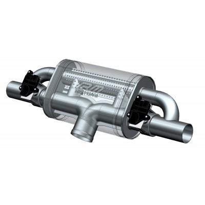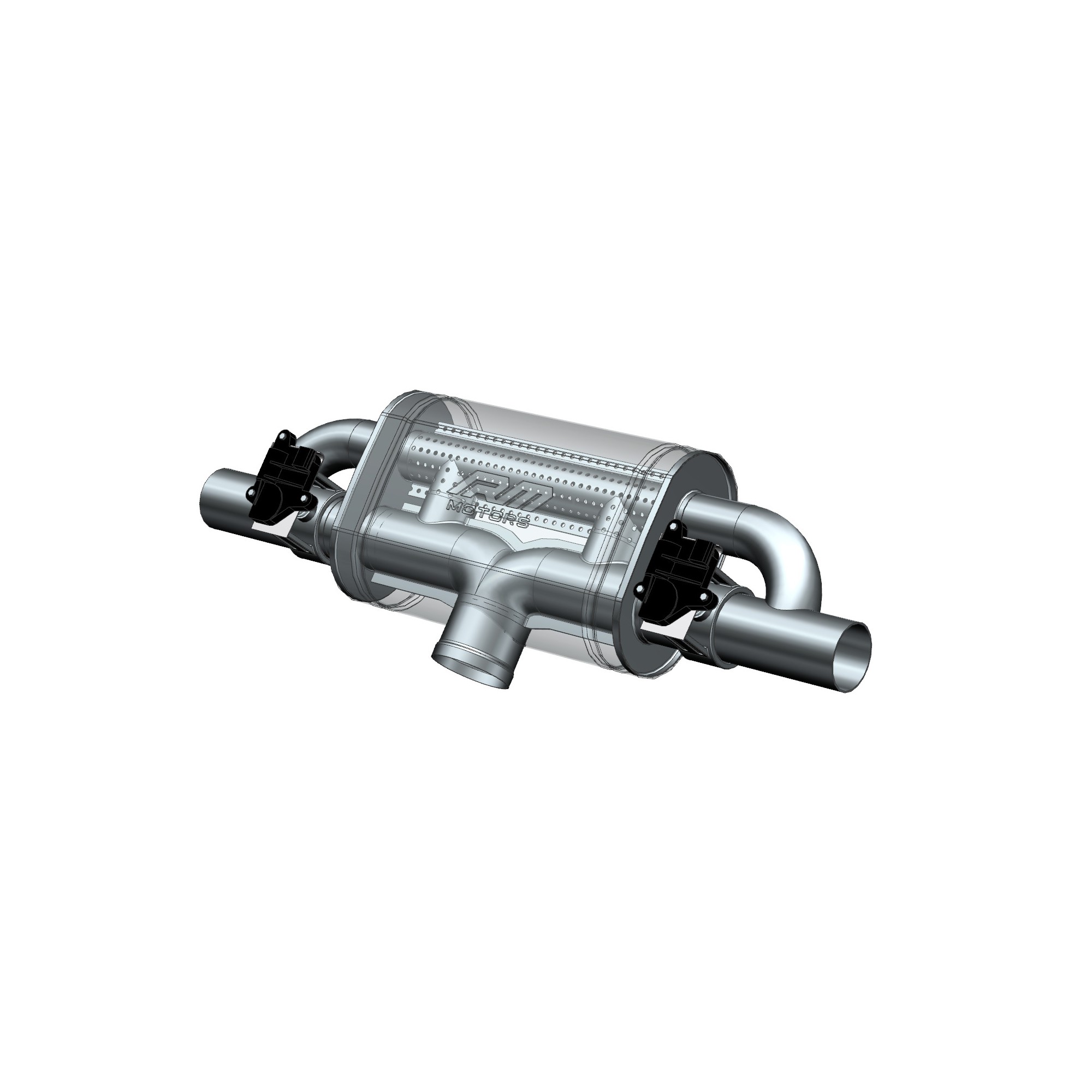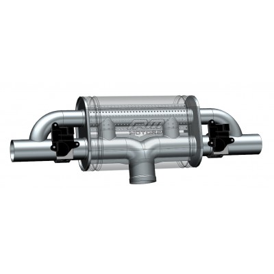 Poprzeczny tłumik przelotowy z zaworem elektrycznym.
