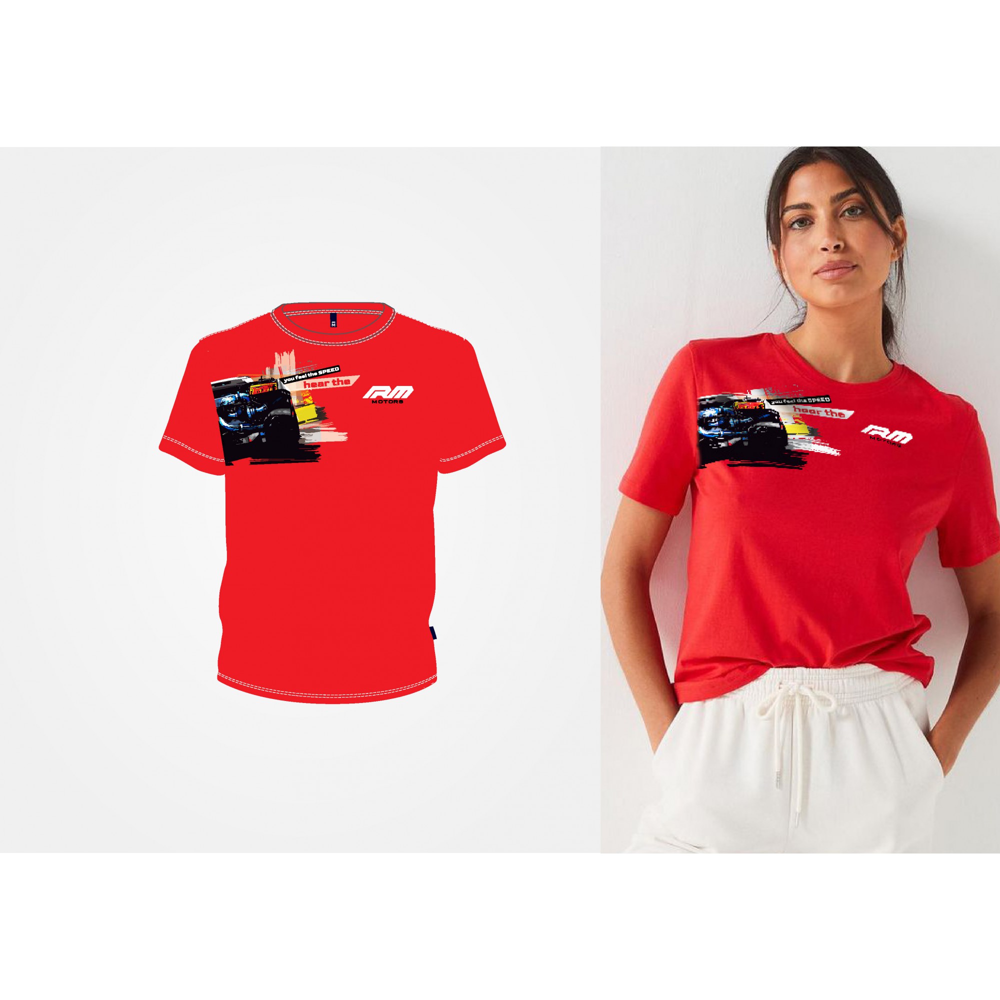 Koszulka damska z logo rm motors marki Fruit of the Loom.