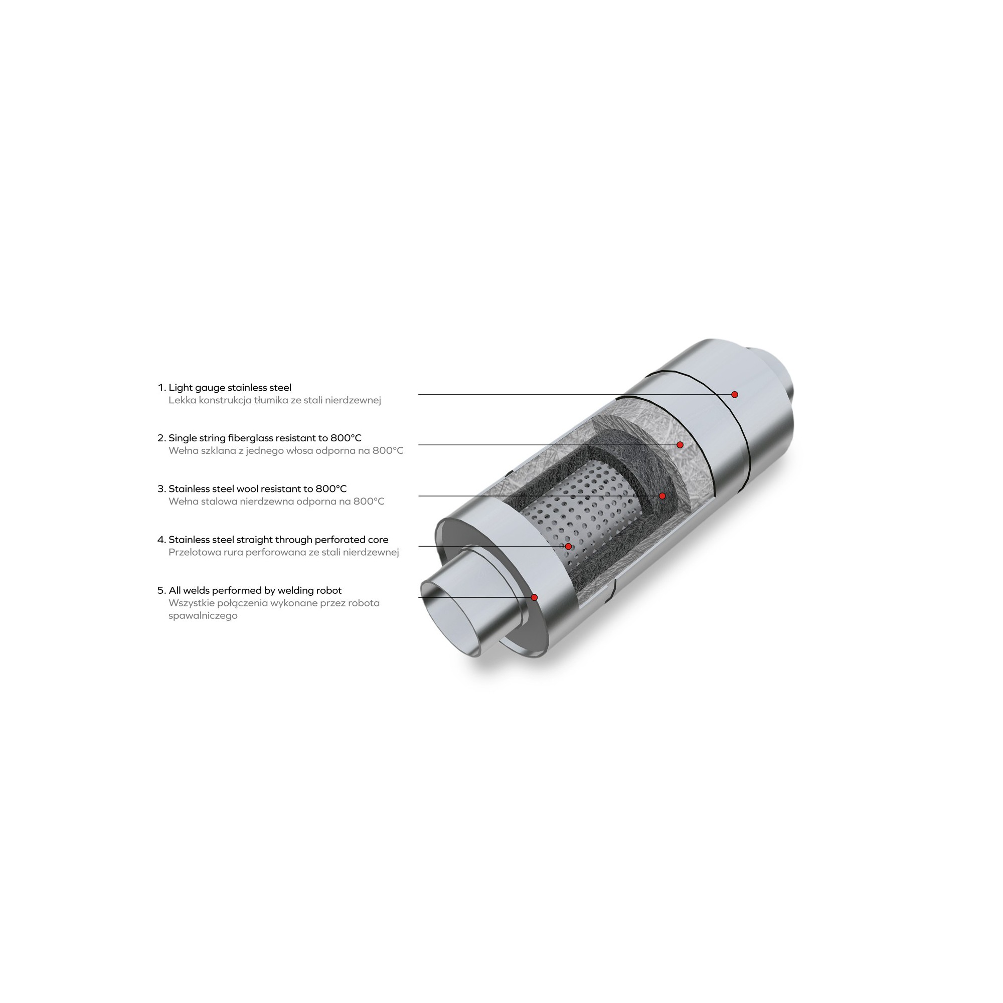Sportowy tłumik przelotowy ze stali kwasoodpornej
