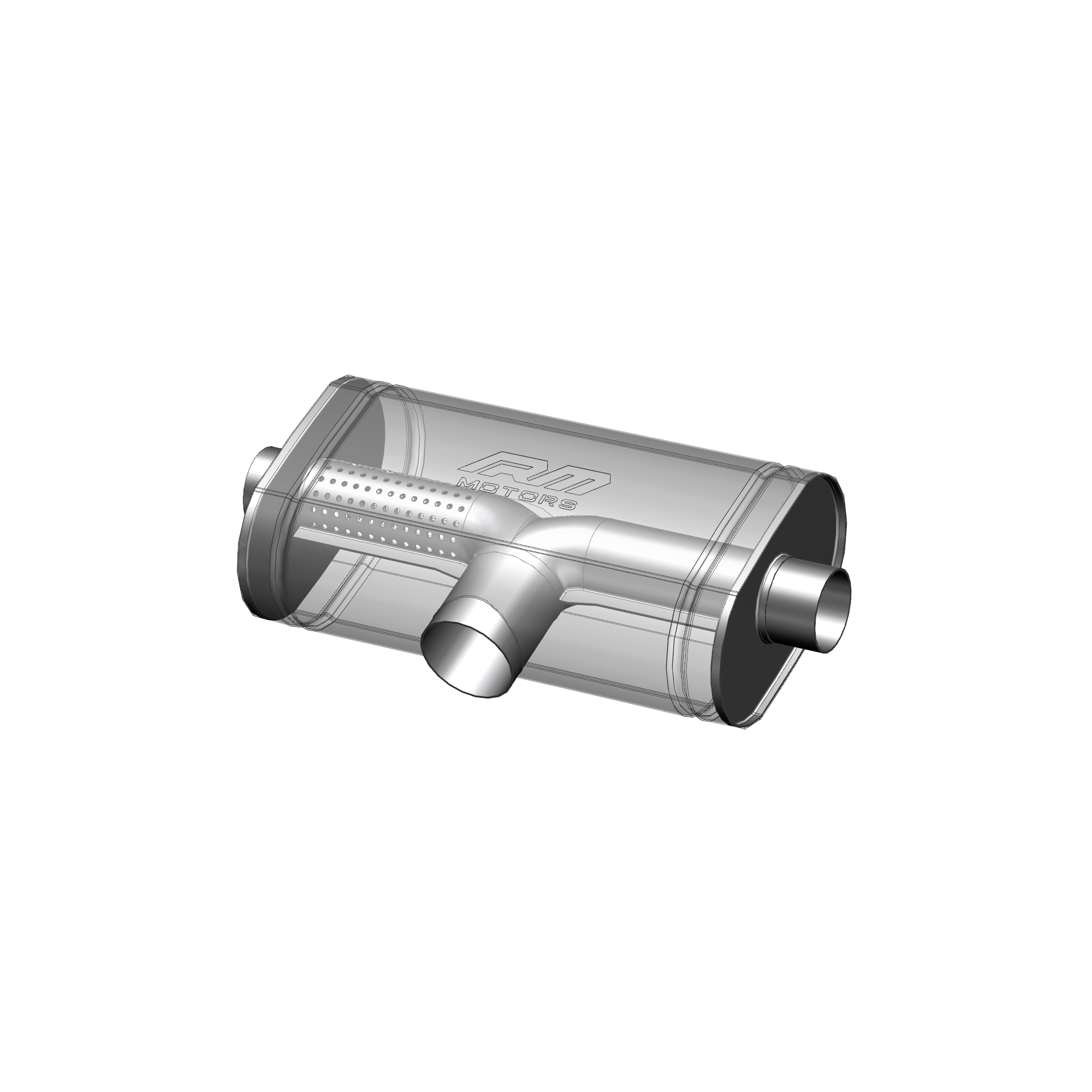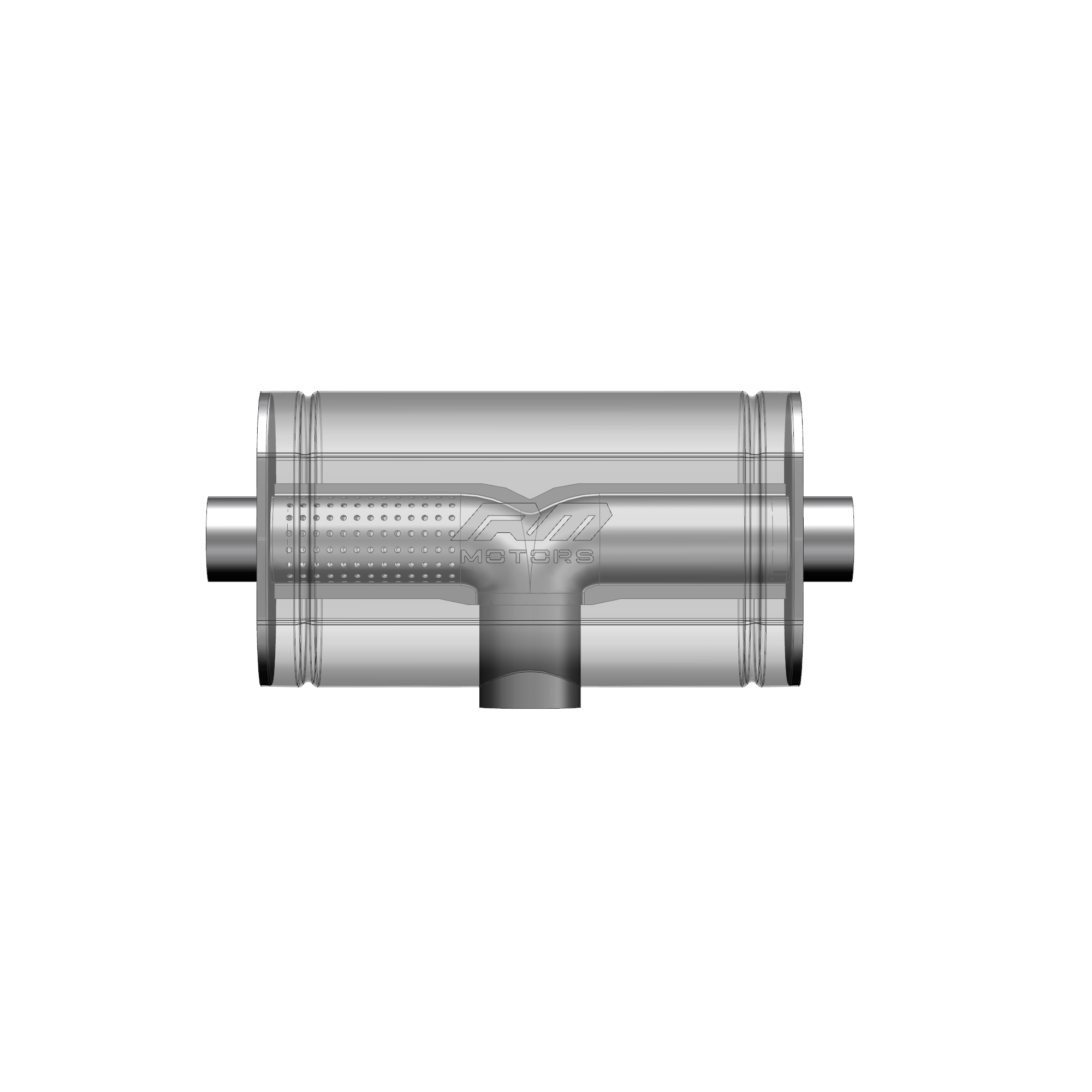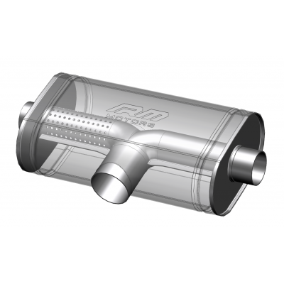 Uniwersalny tłumik przelotowy ze stali kwasoodpornej.